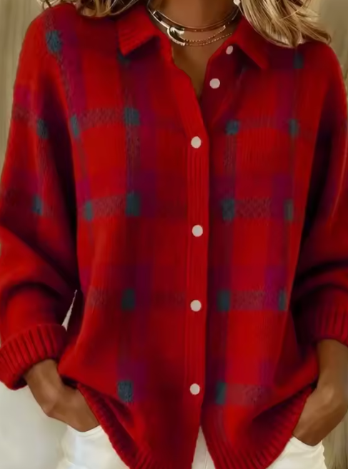 Cardiganen Tesa™ kombinerer et klassisk ternet mønster med et blødt strikket materiale for et look, der både er varmt og elegant. Perfekt til en afslappet dag eller som et ekstra lag på kølige dage.